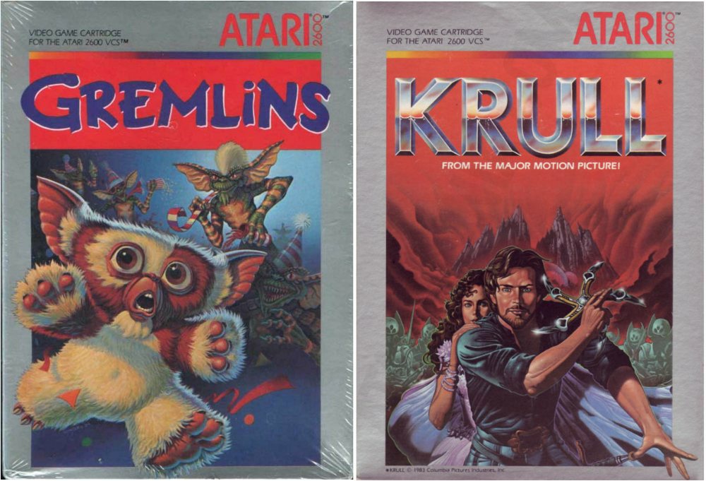 In 1983, Atari decided to change the silver box similar to the way they changed the silver label. They moved the Atari 2600 name from the middle above the picture to the upper right part of the box. Printers include Ivy Hill, Shorewood Packaging and AGI. Printer dates range from May to September, 1983. 1983 confirmed games are Battlezone, Dig Dug, Gravitar, Joust, Jungle Hunt, Kangaroo, Krull, Mario Bros., Moon Patrol, Pole Position, Quadrun, Swordquest Waterworld, and Taz. 1984 games with this format are Crystal Castles, Gremlins, Millipede, Pengo, and Stargate.