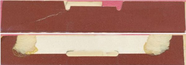 The second we call the glued flap style. This has a tab that is attached to the top flap, and was initially glued to the top of the back of the box. If opened correctly, this small tab remained intact and can be inserted in a hole located in the secondary top flap.