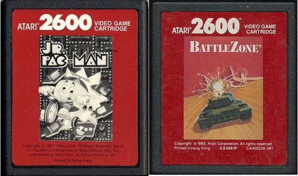 Above are the two red label versions. The only difference between the two is that Picred1, the 1st one Jr. Pac-Man, has a black and white photo. Picred2, the 2nd red one, Battlezone, has a color photo.