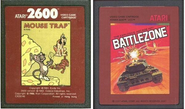 Besides the red box versions, there was a brown box version. I called this brown box because the box looks more like a brown red and the back of the box has the same color as the front. Red boxes have a white back. There are four confirmed games with the brown box: Battlezone, Crystal Castles, Galaxian, and Millipede.