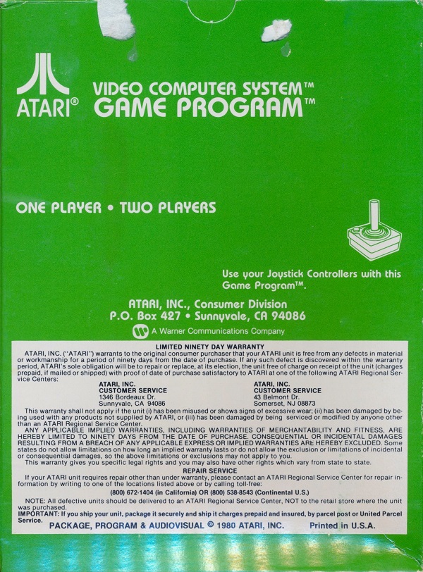 ©1980, green box, white background warranty box, © inside warranty box,