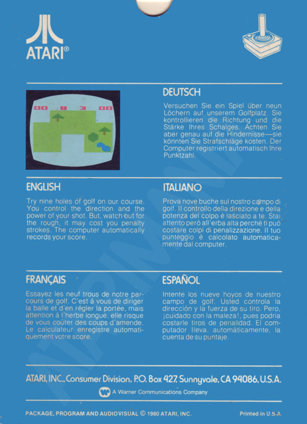 5) ©1980, blue box, 5 languages on back, Printed in USA Front