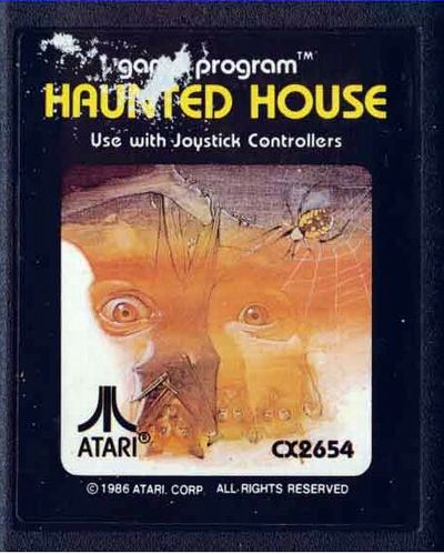 Haunted House Cartridges version a)* C PicBl ©1981, CART1, yellow letters, Atari logo touching bat's arm