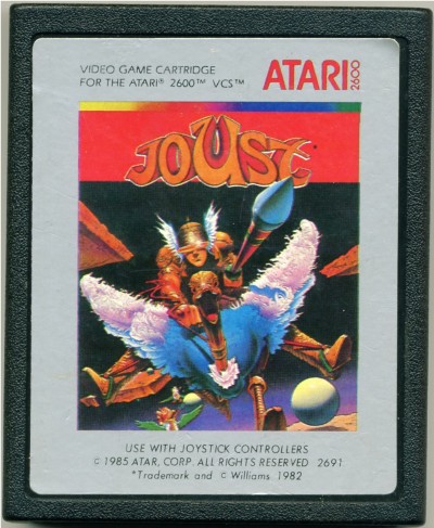 version e)* R PicGr2 ©1985, CART1, ML: “Joust” in orange letters, EL: plastic, “p” on end but NTSC
