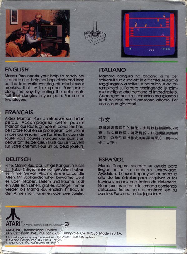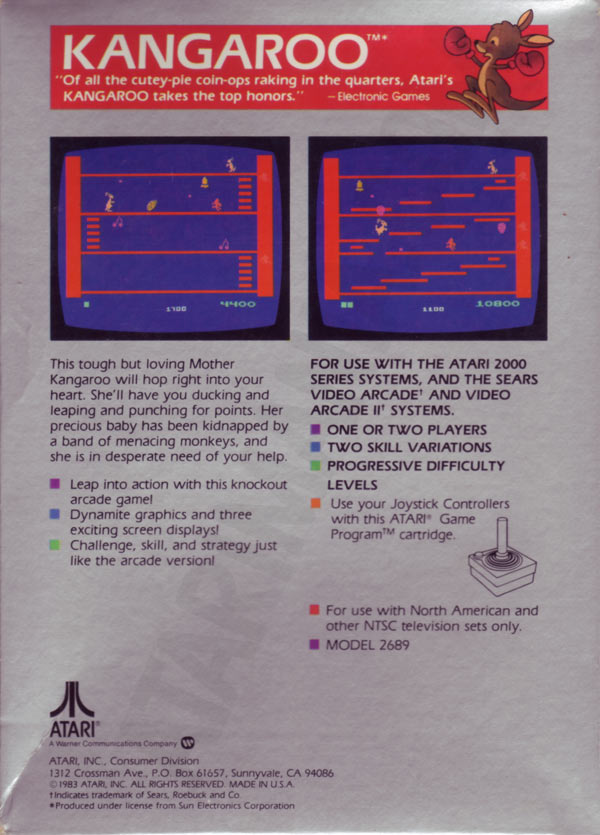 Kangaroo Boxes 1) ©1983, silver box, Made in USA, Rev A on flap, tab flap style box, “Shorewood Packaging” 6/83 on tiny flap Front