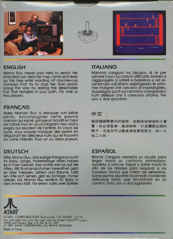 4) ©1987, silver box, 6 languages on back, Made in China Front