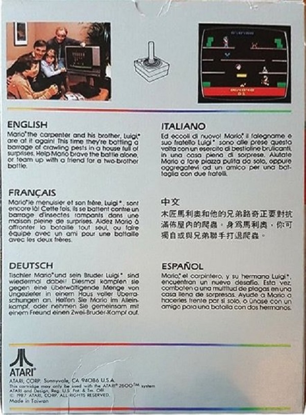 5) ©1987, silver box, 6 languages on back, Made in Taiwan Front