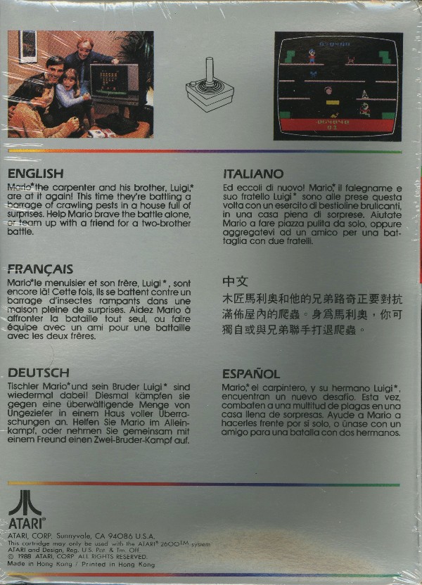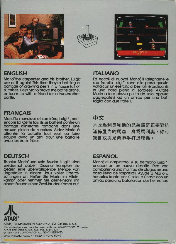 7) ©1989, silver box, 6 languages on back, Atari advantage sticker on box, Made in Hong Kong/Printed in Hong Kong Front