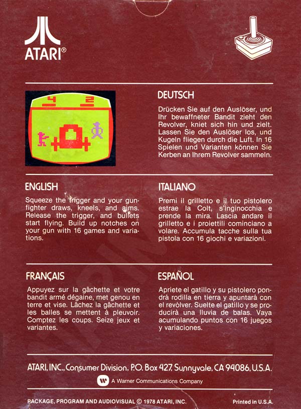 Outlaw Boxes 1) ©1978, brown box, “Game Program” in large yellow letters in center, game options below that, no warranty info on back, Printed in USA, “Bertco Graphics” 6/78 on tiny flap Front