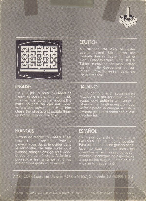 “Atari Pac-Man ™ of Midway MFG.”, sticker (on shrinkwrap): “Sold with