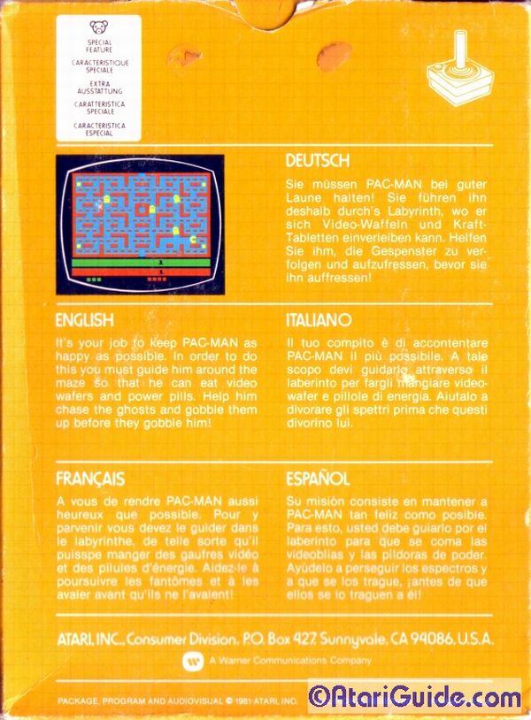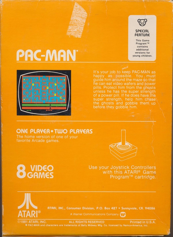 ©1981, yellow-orange box, sticker: “Atari Pac-Man