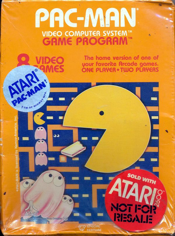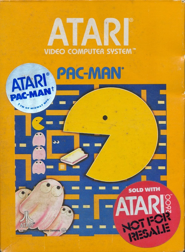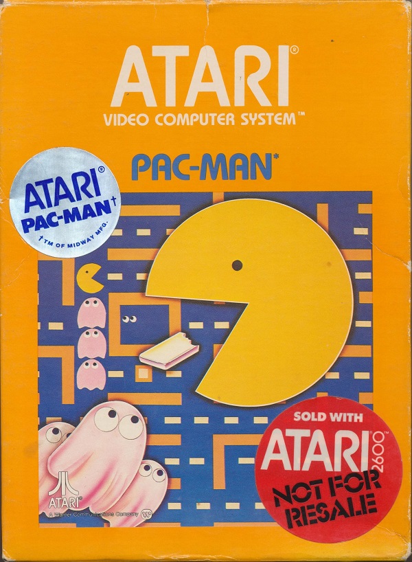 Atari 2600 not for resale”, “Pac-Man” title in blue on front, video game info on