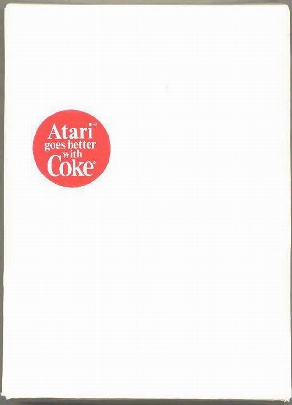 1) no ©, generic white box, sticker: “Atari goes better with Coke”, glued flap style box