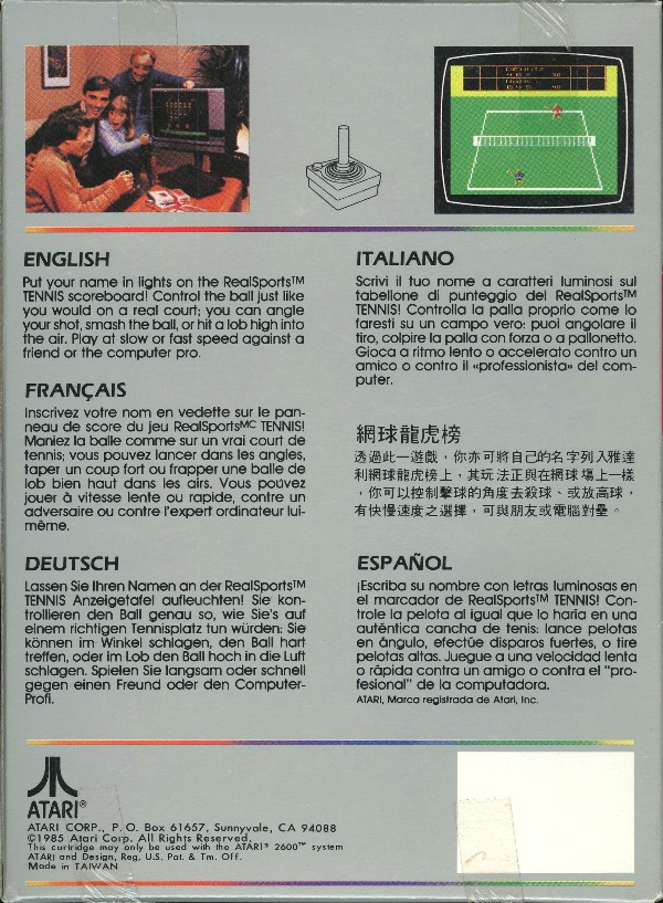 3) ©1985, silver box, 6 languages on back, Made in Taiwan Front
