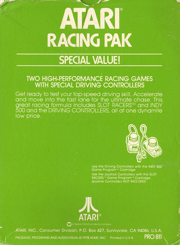1) ©1978, green outer box, contains generic white boxes of Indy 500, Slot Racers, and 2 Driving Controllers, Printed in USA