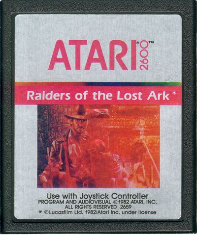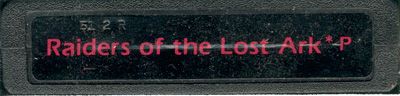 Raiders of the Lost Ark Cartridges version a)* C PicSil1 ©1982, CART1, ML: belt buckle doesn't touch bottom of picture, EL: lower case letters version b)* R PicSil1 ©1982, CART2, ML: belt buckle doesn't touch bottom of picture, EL: lower case letters NOTE: versions a & b have the same main and end labels, but the cartridge protector is different