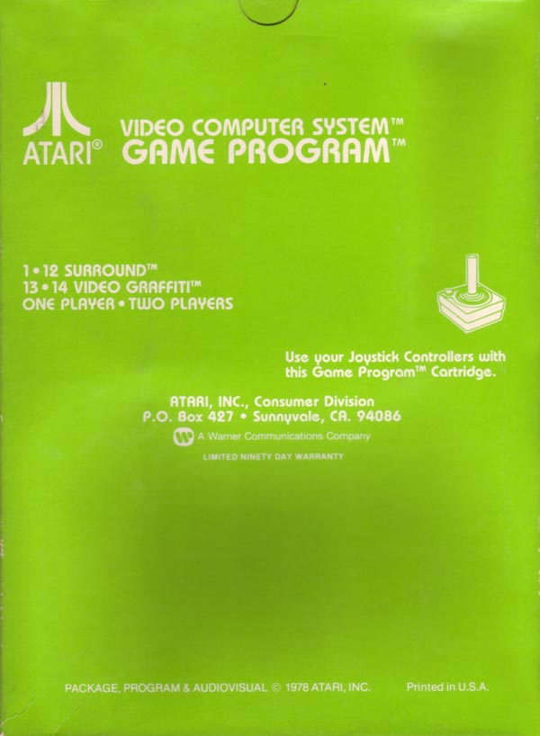 2) ©1978, light green box, “Game Program” in large yellow letters in center, game options below that, no warranty info on back, Printed in USA, standard flap style box, no printer or date; “Bertco Graphics” 6/78 on tiny flap Front