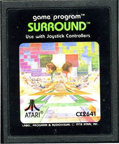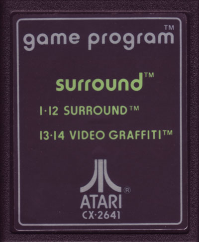 version g)* R PicBl ©1978, CART1, green letters, darker colors, Atari logo and part number thicker lines, “Atari” below logo 3 mm from bottom of picture, EL: “SURROUND” 39 mm long