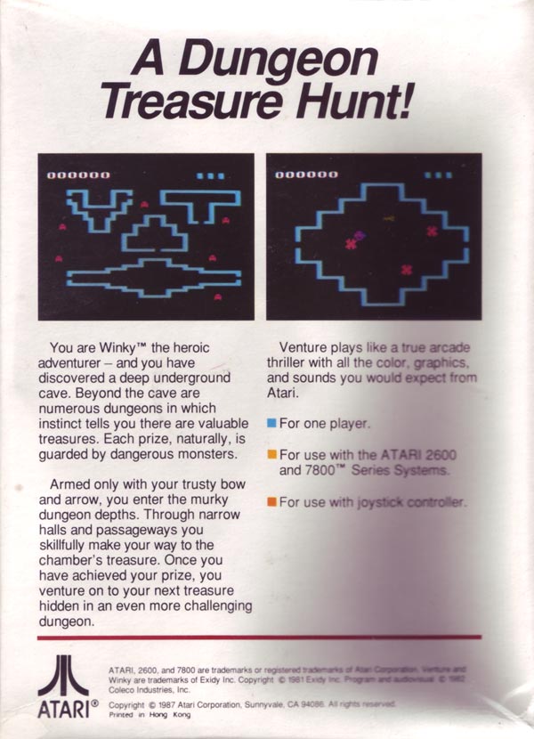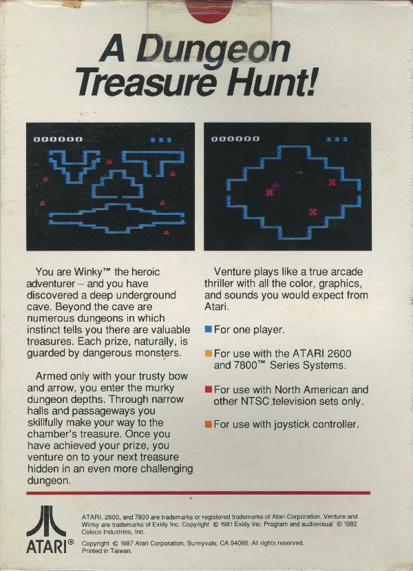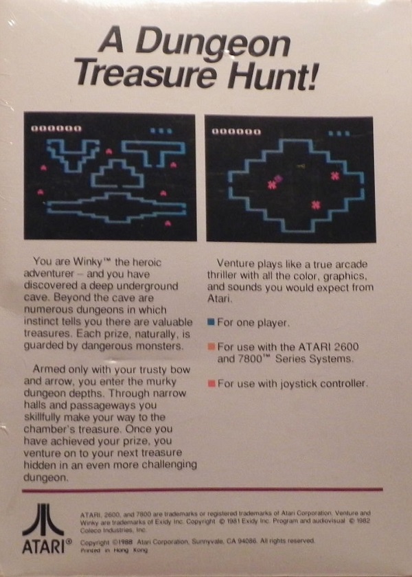 Venture Boxes 1) ©1987, red box, Printed in Hong Kong, standard flap style box, “Faith Luck” 12/87 on tiny flap Front