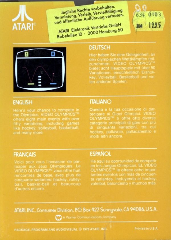 no ©, yellow box, front opening box, “21 video olympics” on side going up