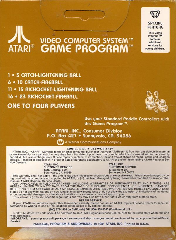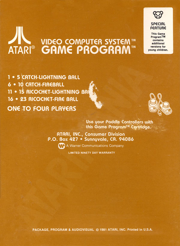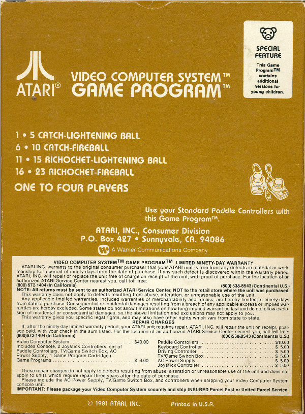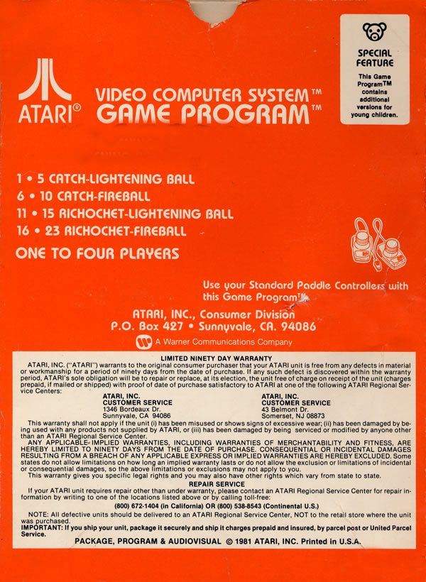 ©1981, orange box, white background warranty box, © inside warranty box, Printed in Front