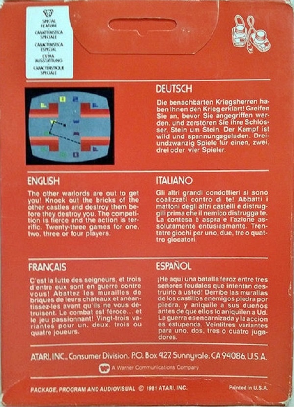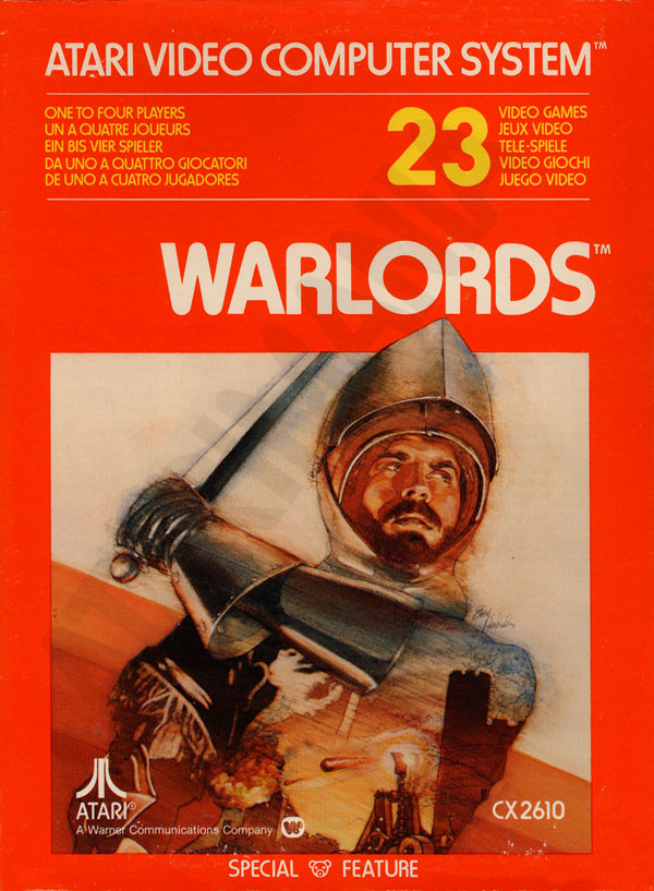 Warlords Boxes 1) ©1981, tan box, white background warranty box, © outside warranty box, Printed in USA, Rev 1 on flap, standard flap style box, “Adpak San Francisco” 3/81 on tiny flap Front