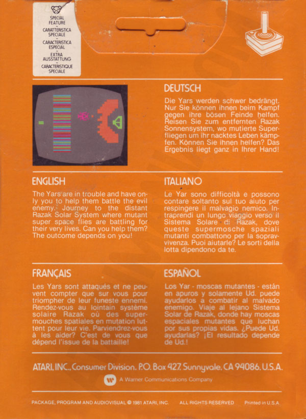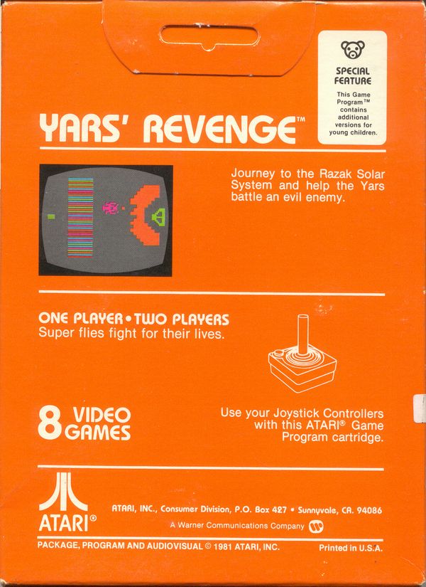 ©1981, orange box, contains Yars' Revenge comic book, Printed in Front