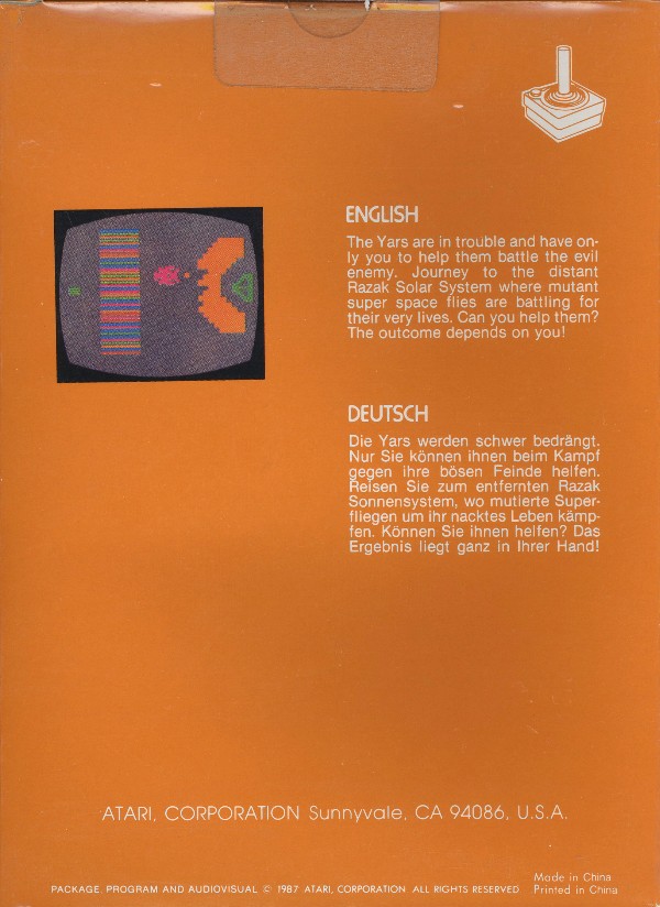 4) ©1987, orange box, 2 languages, Made in China, Printed in China Front