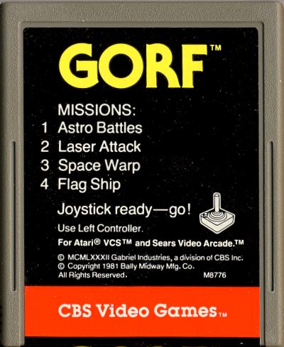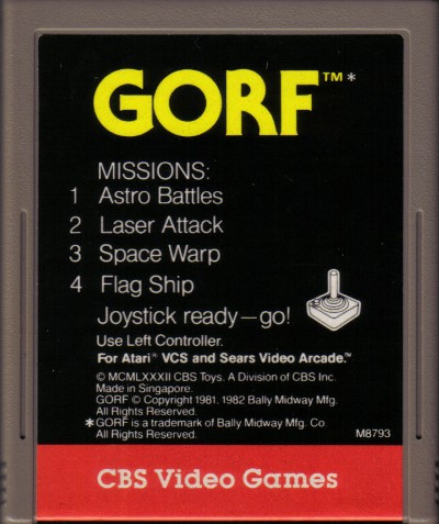 version b)* C ©1982, black label, yellow title, ML: “CBS Video Games ™” on red stripe, M8776