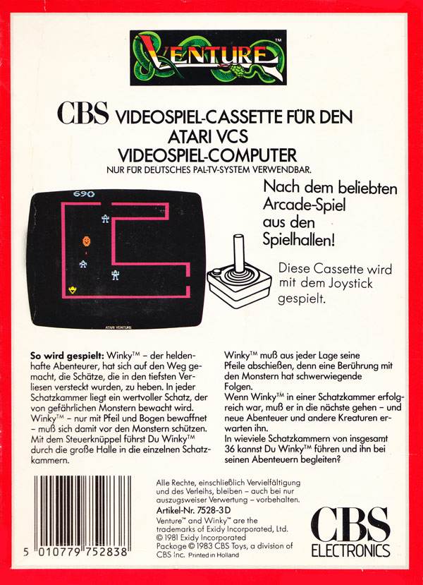 ©1983, black box with yellow box on bottom left front with CBS info, German,