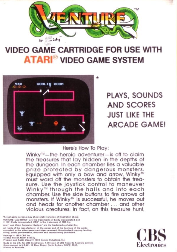 5) ©1983, yellow box, has Coleco Vision on front though this is for the Atari, Printed in Australia Front