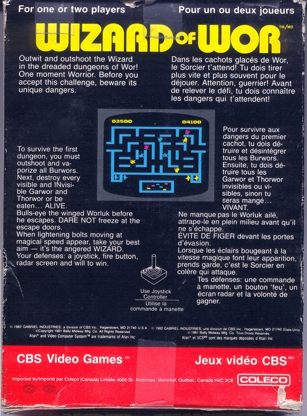 3) ©1982, black box with red stripe, “CBS video games” and “Coleco” on red stripe, English/French box, Printed in Canada in black circle Front