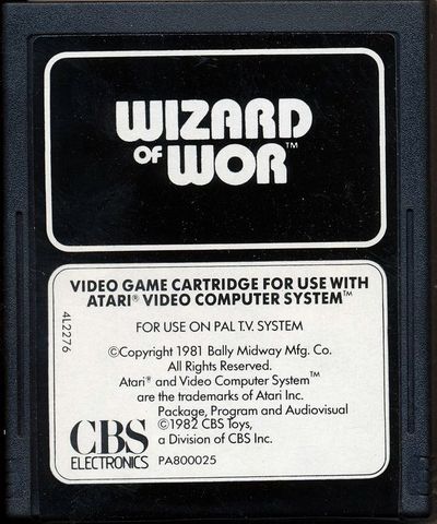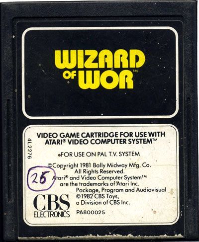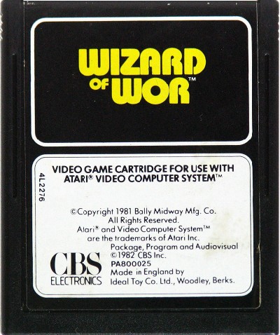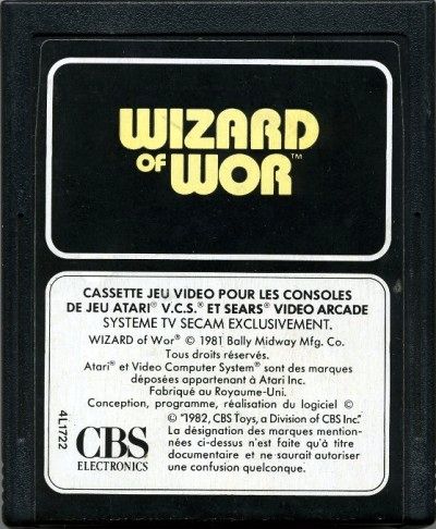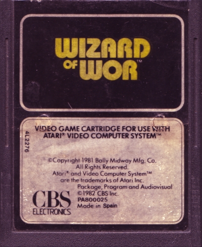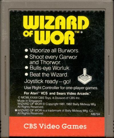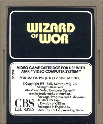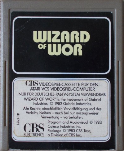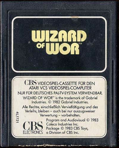 | Wizard of Wor Cartridges version a)* C ©1982, black label, yellow title, ML: “CBS Video Games ™” on red stripe, M8774