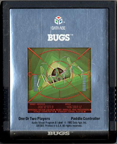 Bugs Cartridges version a)* C ©1982, silver wraparound label, illustration, EL: white text, CART: smooth plastic with round casting mark on back version b)* U ©1982, silver wraparound label, illustration, EL: white text, CART: smooth plastic with no casting mark on back version c)* C ©1982, silver wraparound label, illustration, EL: white text, CART: rough plastic NOTE: versions a, b, & c have the same main and end labels, but the cartridge itself is different
