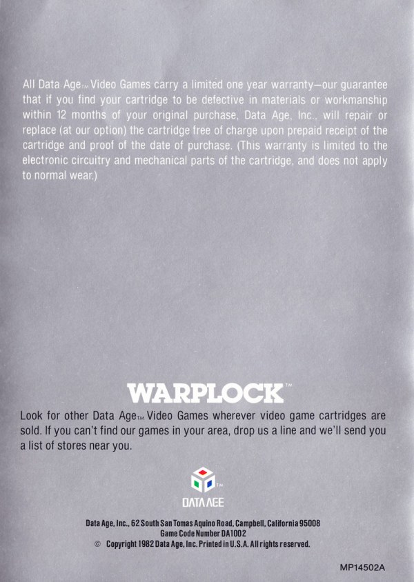 Manual A) ©1982, silver, MP14502A on back, 6 pages (folds out), 5 x 7”, Printed in USA