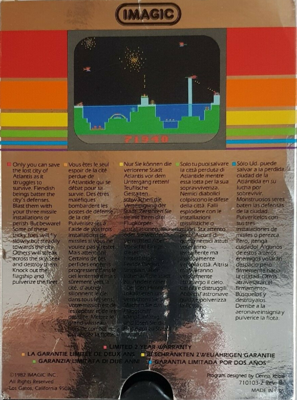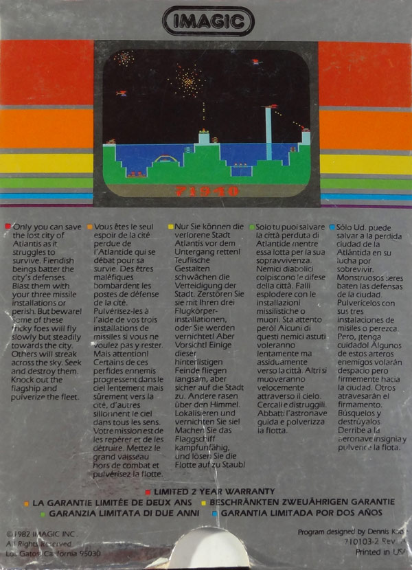 9) ©1982, silver box, illustration day scene, 5 languages, 710103-2 Rev A, Printed in USA, “PAL” written to the left side of the title Front