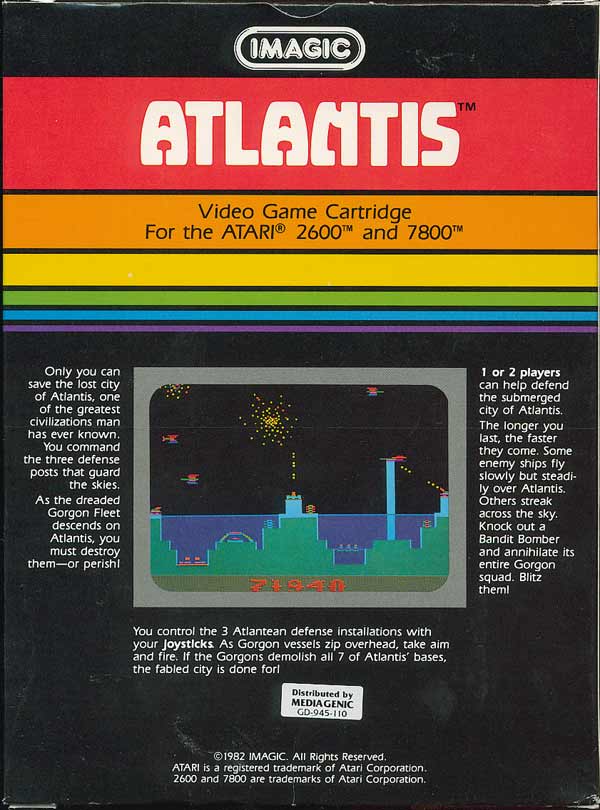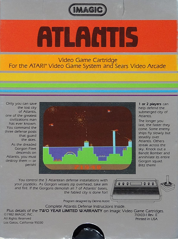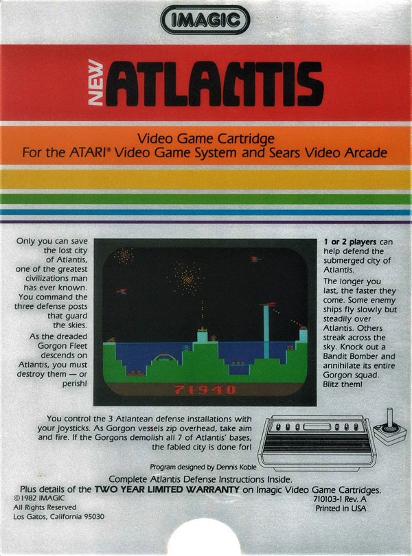 Atlantis Boxes 1) ©1982, silver box, illustration night scene with star, no product #, no Rev, Printed in USA, “New” written to the left side of the title Front