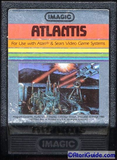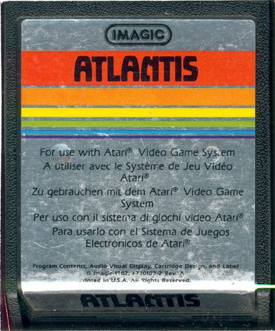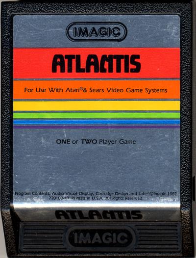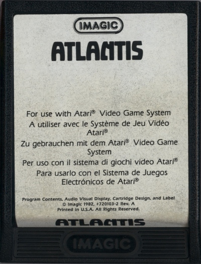 Atlantis Cartridges version a)* C ©1982, silver label, illustration night scene, bright star in upper left, 720103-1 Rev A