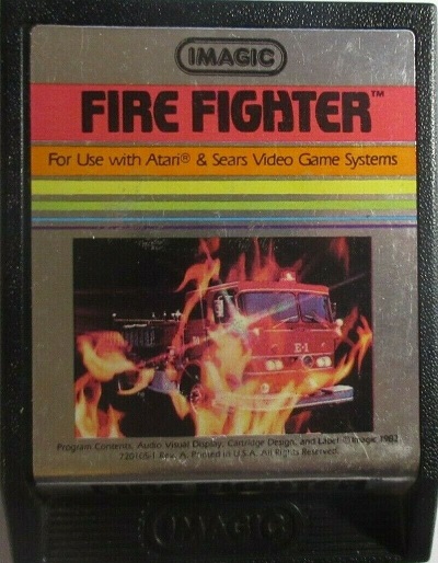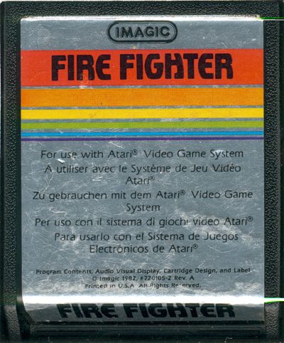 Fire Fighter Cartridges version a)* C ©1982, silver picture label, 720105-1 Rev A. right edge of picture is above the 9 of 1982