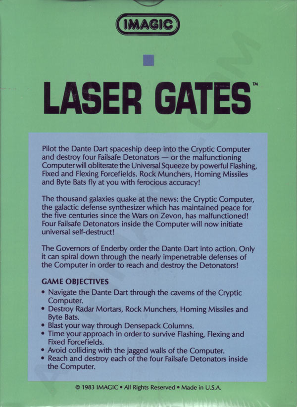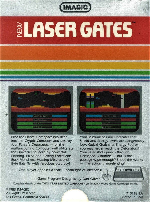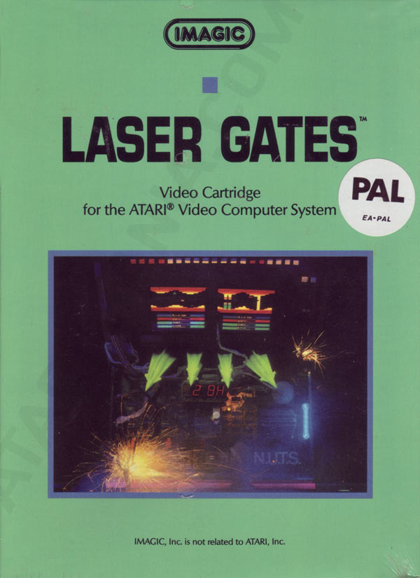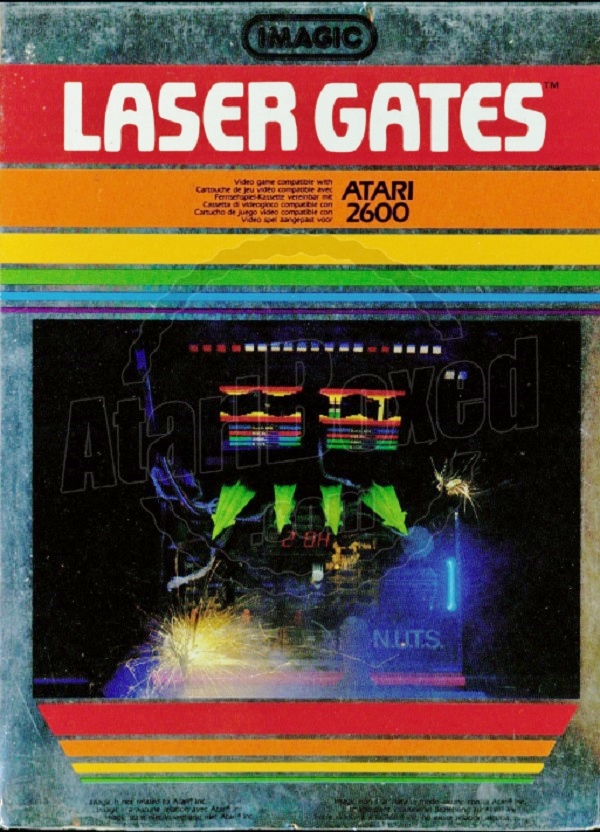 Laser Gates Boxes 1) ©1983, silver box, illustration, 710118-1A, Printed in USA, "New" written to the left of the title Front