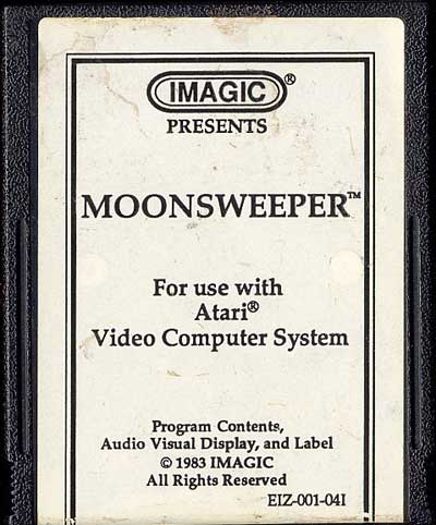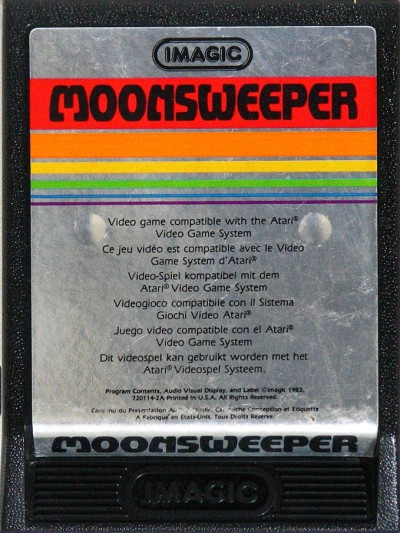 Moonsweeper Cartridges version a)* C ©1983, silver text label, “use with…” inside orange stripe, 720114-1A