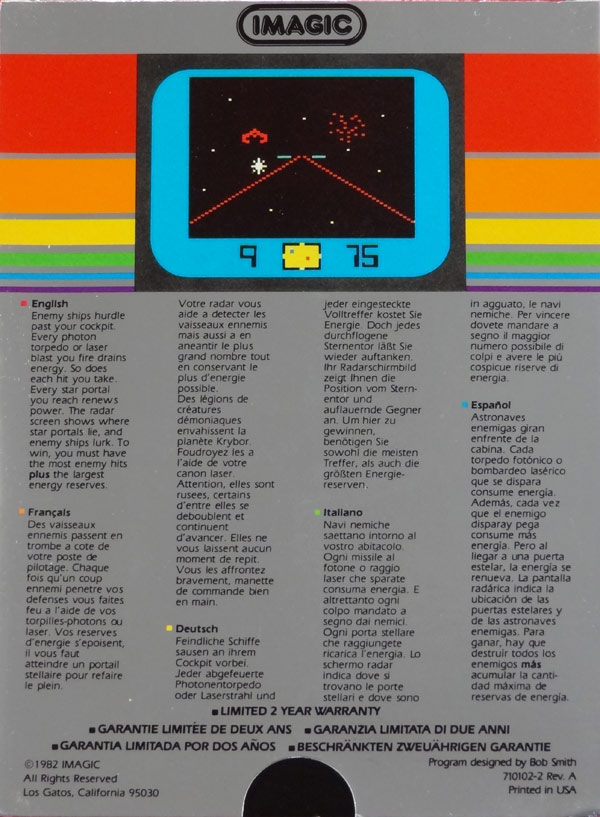 4) ©1982, silver box, 5 languages, 720102-2 Rev A, Printed in USA, “PAL” written to the left of the title Front