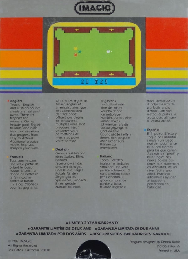 3) ©1982, silver box, 5 languages, 710100-2 Rev A, Printed in USA, “PAL” written to the left of the title Front