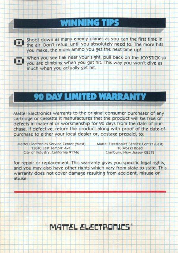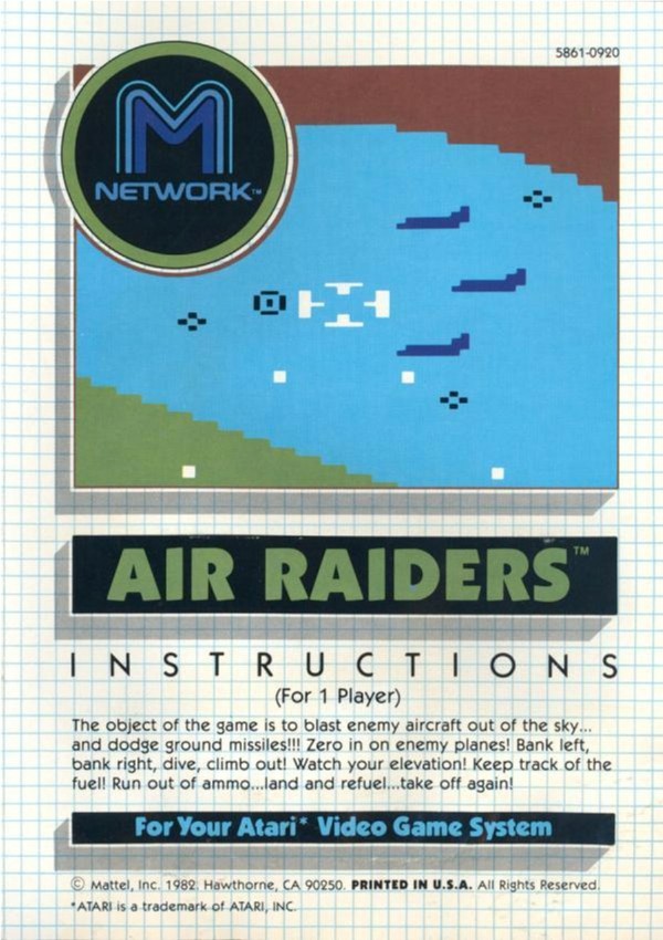 Air Raiders Manual A ©1982, white/blue grid, 5861-0920 on front, 6 pages (folds out), size?, Printed in USA