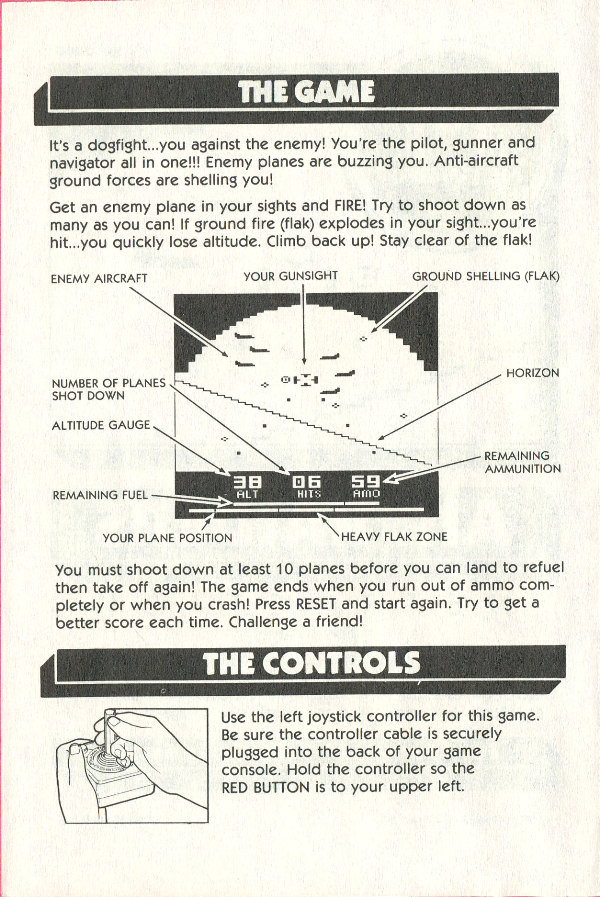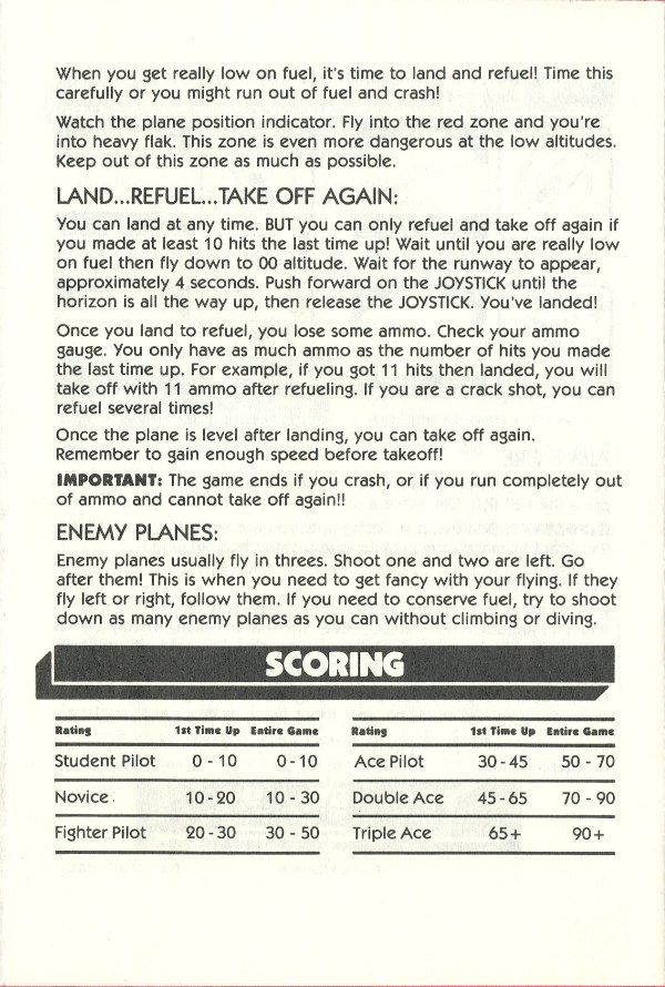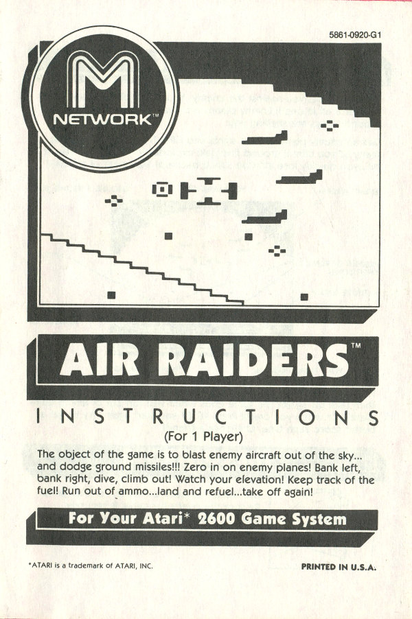 Air Raiders Manual C ©1982, white, 5861-0920-G1 on front, 6 pages (folds out), 4.125 x 6.25”, Printed in USA, b&w cover and contents