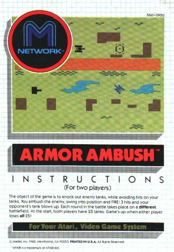 Armor Ambush Manual A ©1982, white/blue grid, 5661-0950 on front, 6 pages (folds out), 4.75 x 6.75”, Printed in USA