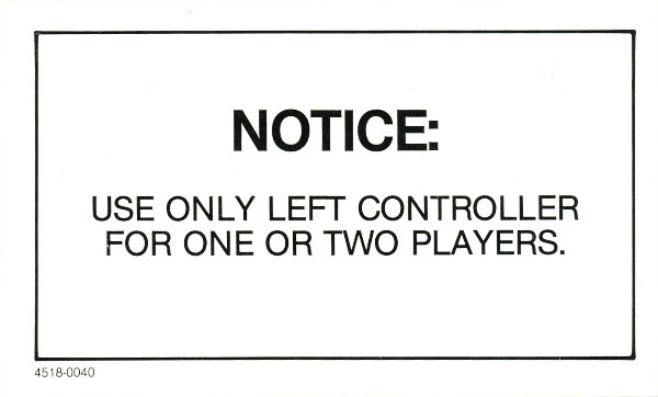 Burgertime Insert 1 no ©, white, 4518-0040, 3 x 5”, “Notice: Use only left controller”