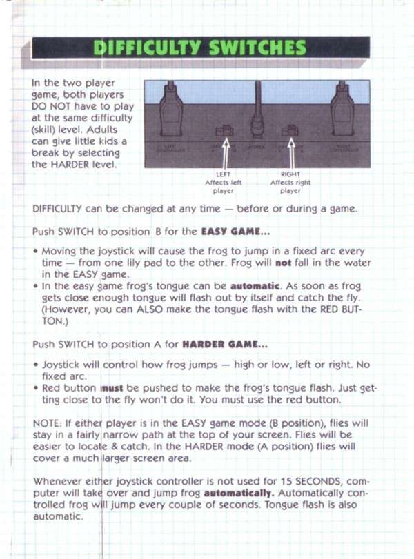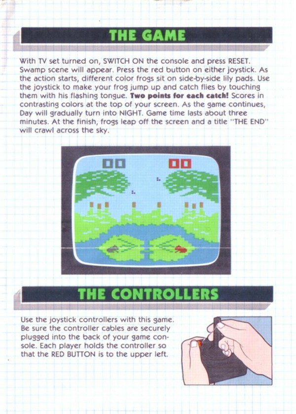 Frogs and Flies Manual B ©1982, white/blue grid, 5664-0950-G1 on front, 6 pages (folds out), size?, Printed in USA
