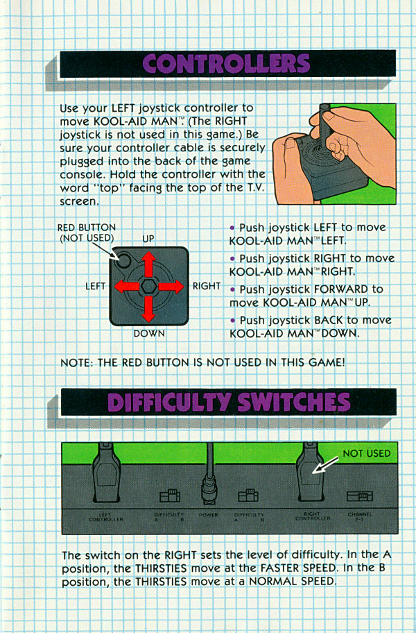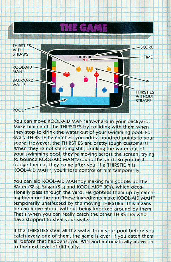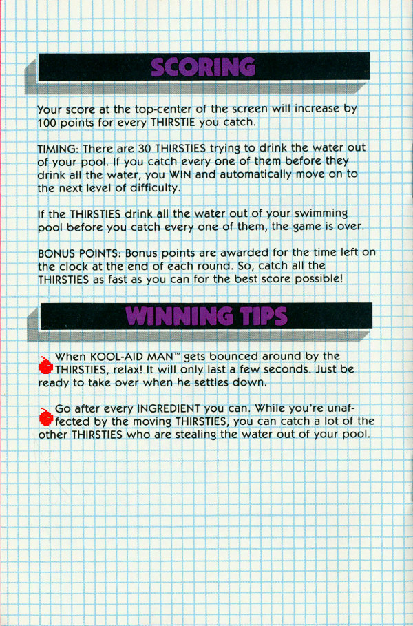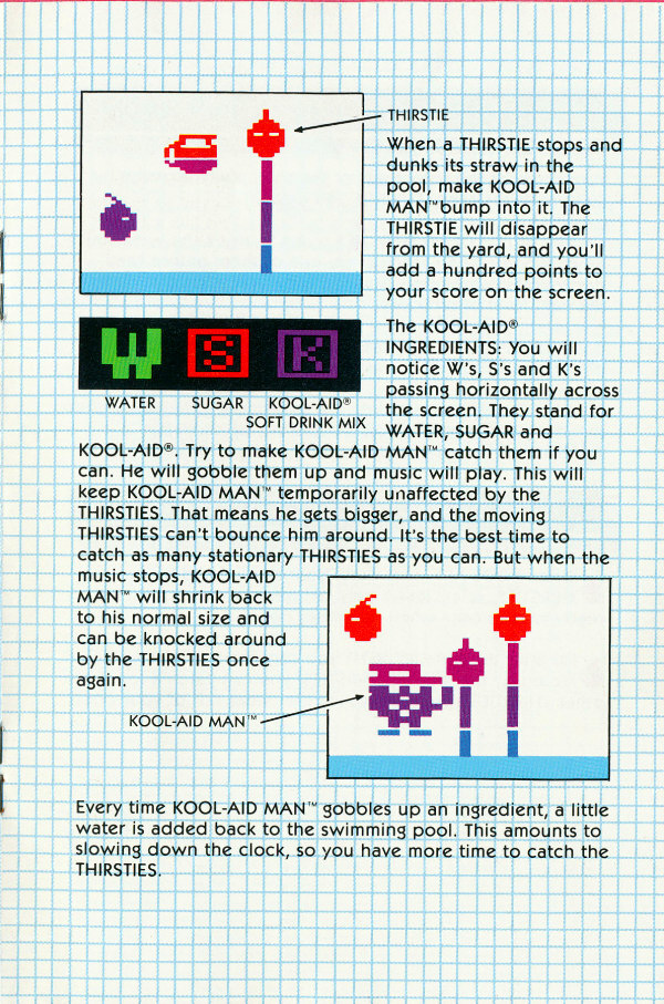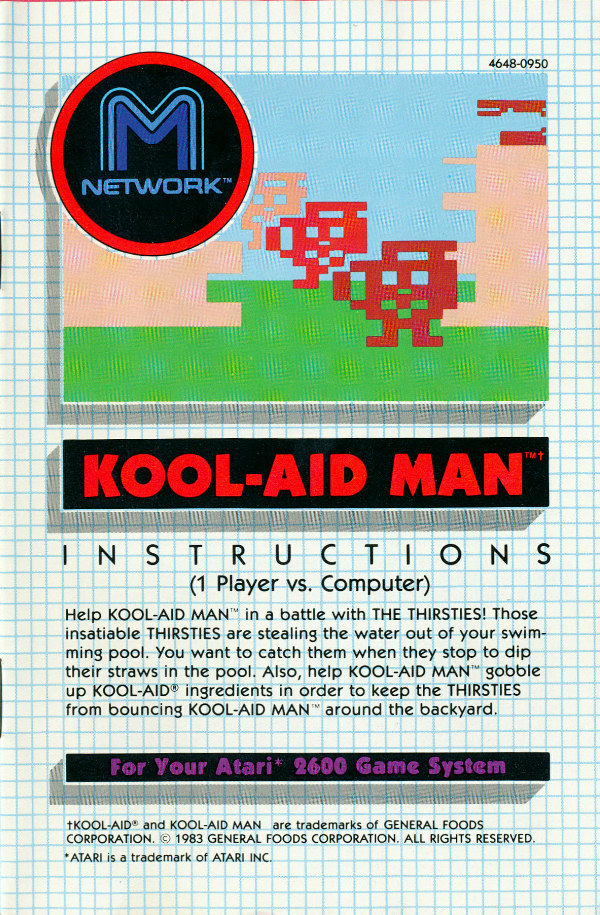 Kool-Aid Man Manual A ©1983, white/blue grid, 4648-0950 on front, 8 pages, 4 x 6”, Printed in USA