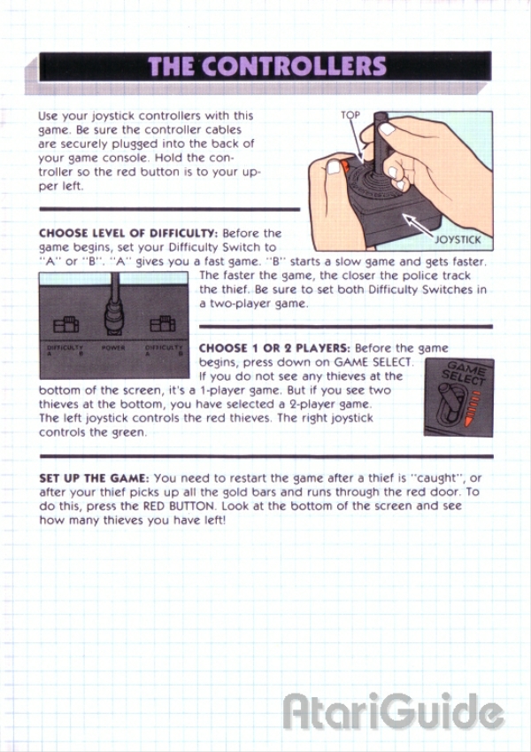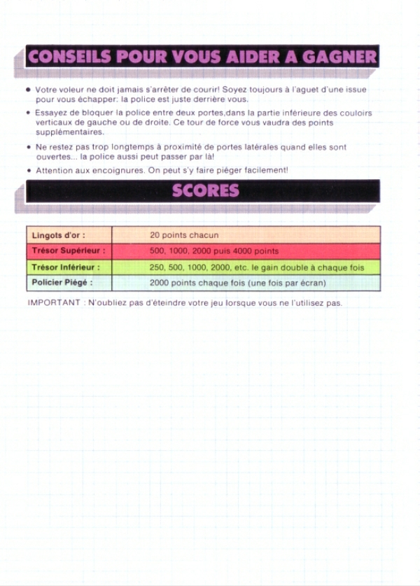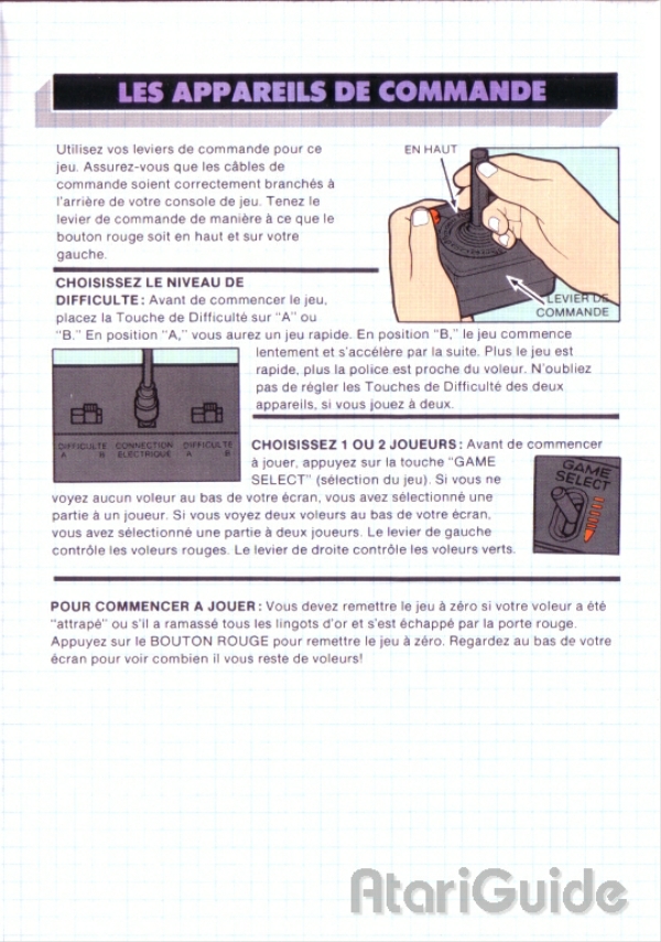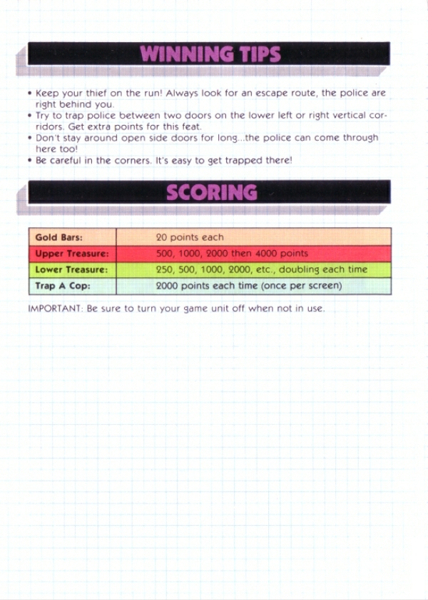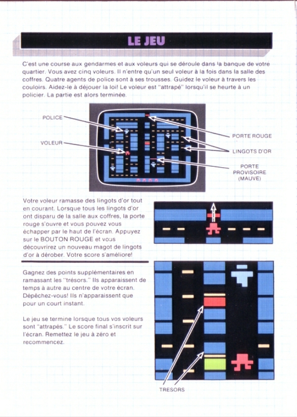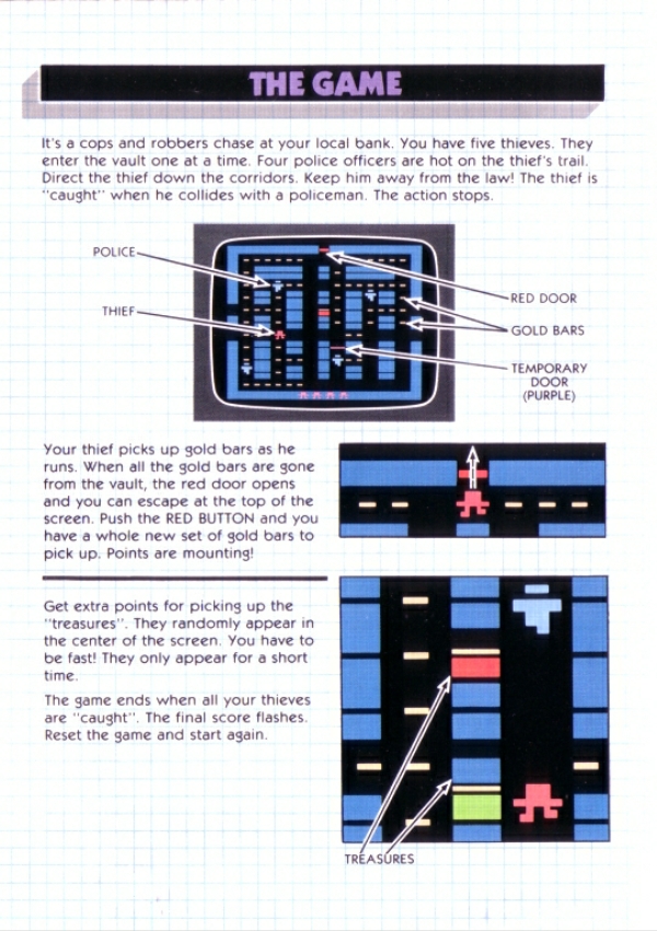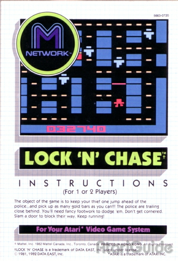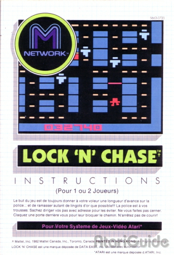 Lock 'N' Chase Manual B ©1982, white/blue grid, 5663-0720 on front, English/French, 12 pages, size?, Printed in Hong Kong, (this is a flip book, so the French front is actually the back cover)